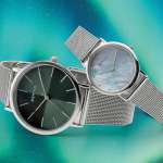 2023年モデルとなる今作は、夜空に一直線に伸びるグリーンの帯状の光を表現したクロスのダイヤルと、常に揺らめく波の光を表現したパールカラーの2種類で展開され、前者はケースサイズが36mm×厚さ8.5mmのユニセックス仕様、後者は同26mm×厚さ7.5mmのレディースサイズとなります。