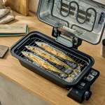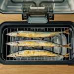 これまで「フィッシュロースター」として培ったノウハウに、新しい技術を組み合わせ、パワーアップした「マルチロースター」。搭載されている“高性能触媒フィルター”は、煙やニオイ成分の約90%をカットします。リビングで使う時にもありがたいですね。