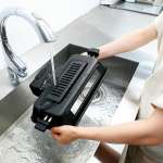 お手入れのことも考えて、ふたは「ワンタッチ着脱ふた」となっており、ふた上部のプッシュボタンを押しながら引き上げれば、簡単にふたを取り外し可能。ふただけでなく、焼き網、反射板、水受け皿も本体から取り外して丸洗いできるから、気になる汚れをしっかり落とせます。
