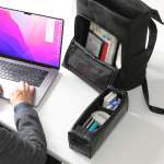 最も特徴的なのがガジェットケース。こちらには、デジタルガジェットやマウス、ケーブル類、お気に入りの文房具などを収納できます。取り外しもできるので、卓上に置いてそのままケースとして使うことも可能です。
