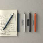 まるでノートの一部かのように固定できて、いつでもノートと一緒に持ち歩ける「ピタン」。インクの色はブラックのみで、軸色はホワイト/ブラック/オレンジ/ブルーグレーの4色。ボール径は0.5mmです。8月28日に発売されます。