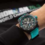 ターコイズカラーをあしらっているのは「エンデュランス プロ IRONMAN 70.3 ワールドチャンピオンシップ」。こちらのモデルではケース素材に、ブライトリングが独自に開発した合金素材“ブライトライト”を採用。