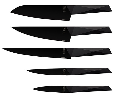 ・フルセット(5万3784円):三徳包丁19センチ、シェフナイフ19センチ、クイジンナイフ21センチ、ペティナイフ11センチ、ペティナイフ9センチ