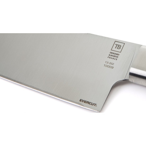 4000度以上の高熱レーザービームで、炭化チタン・超綱材料をステンレス鋼の刃の縁に沿って溶融するという特殊な技術により、ステンレスの約300倍、セラミックの約5倍もの耐久性を実現。“25年研がなくてもいい包丁”として、フランスではプロの料理人はもちろん一般家庭でも使われている。1本ずつシリアルナンバーが入れられ、一生涯の保証が付くというから、そのクオリティに対する自信は推して知るべし。