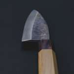柔軟性のある青紙2号は刃こぼれしにくく研ぎ直しが簡単にできるのもメリット、さらに刃金を2枚の地金で挟んだ三枚あわせは、研ぎつづけた包丁の刃先が小さくなっても切れ味が持続。鋭い切れ味を長く愛用できるのはうれしいですよね。