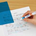水色極細ペンは線幅が0.3mmのため、暗記用に細かい文字で筆記することも可能。水色ペンで書いた文字は青色シートをかぶせば消えるため、ノートをとる際に問題の答えや重要語句、大事なポイントなどを書いておけば、テスト前の時短復習に便利です。