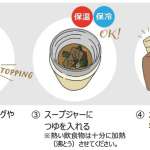 スープをエスニック風にしてみても面白いし、麺に中華麺やショートパスタを使ってみるのも面白いかも。寒い季節の軽食なら、具沢山のおにぎりに熱々の出汁をたっぷりかけていただくお茶漬け弁当なんてのもいいですね。アイデア次第で、お弁当として持ち出せるメニューの幅が大きく広がりそうです。