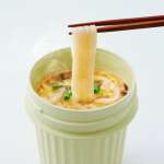 また付属する真空断熱スープジャーは容量360ml。従来のスープジャーでも熱々のスープやつゆを持ち運ぶことはできましたが、温かいつゆと常温の麺を混ぜると、どうしても多少温度が下がってしまいます。そこで本品付属のスープジャーでは、より断熱効果を高めるために口径の小さな細口仕様を採用。これにより、温かいつゆは温かいまま、冷たいかけつゆは冷たいままおいしく持ち運べるというわけです。