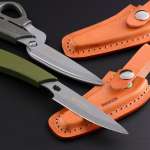 持ち運びにはキャンプの道具箱や、カバンの中で一緒に入れたものを傷つけないように、安全に携帯できる革ケース付き。ナイフとハサミの機能を備えながら、全長約20cmとコンパクトサイズ。
