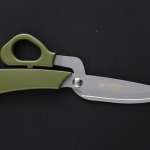 ナイフとハサミの二刀流を成立させるため、擦れ合う2枚の刃に隙間ができないように、シザーナイフ自体は出刃包丁や刺身包丁のような片刃仕上げ。食材を切る際はやや斜めに切れるような感じになりますが、慣れれば違和感もなくなります。