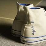 コラボモデルのベースとなる「ALL STAR R」は、オールスターの人気のデザインはそのままに、さらに優れた軽量性やクッション性、通気性で、履き心地をアップさせた次世代モデルです。このたびのコラボモデルは、ハイカットモデルのホワイトとネイビーの2色をラインナップ。