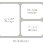 収納容量は、「PAC-10」がソフトストレージのみで8.8L、インシュレーションを使用した場合は4.6L。「PAC-20」はソフトストレージのみで18.7L、インシュレーションを入れた場合は12.1Lです。収納量の目安は、「PAC-10」なら350ml缶で7本、500mlペットボトルで5本程度で、「PAC-20」なら350ml缶で18本、500mlペットボトルで13本が目安になります。