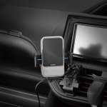 iPhoneをホルダーにセットすると、端末ごとに異なる充電コイルの位置を検知して、ホルダーの高さを自動調整。最適な充電位置を記憶して、2回目以降は検知なしでスムーズに調整します(ただし、エンジンがOFFになると記憶した充電位置はリセットされます)。