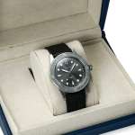 ストラップはブラックのトロピックラバーが標準で装備され、今回のコラボレーションのためだけに開発されたグレーカラーのストラップが同梱されます。