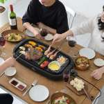 しかもプレートのサイズは従来品の約30%アップの内寸470×240mm(全体W580×D300×H80mm、重量は3.1㎏)。このサイズ感なら、大人数でプレートを囲んで楽しく焼き肉パーティーが楽しめそうです。