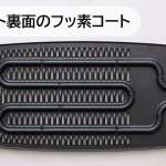 ニオイの原因となるプレート裏面には、油汚れもすっきり落とせるようにフッ素コートが施されているので、水洗いだけで汚れが落としやすく、お手入れもカンタンです。