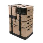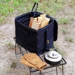 Mサイズには缶ストーブがピッタリ収納できます。キャンプの時には薪を入れておけば夜露に濡れません。