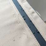 素材は600デニールの高密度ポリエステルで、止水ファスナーを使用。裏側と底面には PVC コーティングを施し、雨が中に入るのを防ぎます。持ち運びにもおうちの収納にも活躍しそうですね!