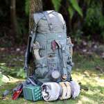 食材や飲み物を入れたとしても、ソロキャンプ1泊分はもちろん、ブッシュクラフターなら2~3泊分ぐらいは入れられそうな「ブッシュクラフトバックパック」。手持ちのギアに合わせて自分仕様にカスタムするのも楽しそうです。
