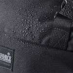 メインの素材には頑丈な1050デニールのナイロンを、ロールトップ部分には柔らかく耐久性もある420デニールのナイロンを使用。テフロンコーティングを2回行っているため、撥水性や耐摩耗性、非粘着性あり(ロールトップ部分はコーティング1回)。