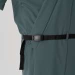 また、バックル式テープベルトとボタンでフロントを留められる仕様なので、着脱しやすいところも気軽に着やすいポイントです。