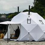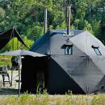 大型サウナとなると設営に手がかかるものも多いのですが、「DOME 12」の最大のポイントはずばり設営の簡単さ。名前からも分かる通りテント本体は安定感のあるドーム型で、しなやかなグラスファイバーフレームを内蔵する13枚のパネルで構成されています。