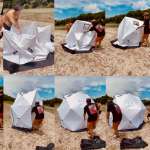直径3mを超えるビッグサイズながら、傘を開くように広げるだけと、とにかくラクラク。また1本1本のフレームが短いため、収納サイズもφ50×85cmとコンパクト。携行・保管の容易さは大きなメリットです。