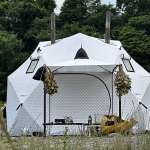 これまでコンパクトな2~4名用「CUBE 4」、最大33名を収納しダイナミックなアウフグースを楽しめる巨大サウナ「CUBE 33」などをリリースしてきたSotoburo。新作「DOME 12」はいうなれば、その中間に相当するモデルです。