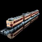 ヘッドマークや国鉄マーク、車体内部シートやパンタグラフなど、リアルな造形と塗装で在りし日を再現。