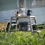 ◆家やキャンプでも使えるオールブラックの脚立は棚にも椅子にもテーブルにも変身!