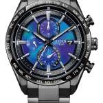精悍な輝きを放つケースは42mm径、10.8mm厚で、ランダーの着陸脚パーツと同じく、シチズン独自の表面硬化技術“デュラテクトDLC”を施したスーパーチタニウムを使ったもの。バンドにも同素材を使うことで、強靭さとともに軽やかな装着感を実現しています。