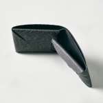 一枚のレザーを縫製せずに折り込んで組み立てるイロセの「SEAMLESS」と呼ばれる人気シリーズの色別注。タンニンなめしした牛革に木目のエンボス加工を施した厚手のレザー「Plywood Leather」を製品名に冠しています。