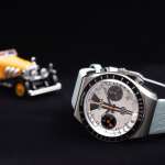 独特な外観のベゼルデザインに加え、3時位置と9時位置にあしらわれたミニダイヤルが印象的なレース仕様のコレクション。ホワイトのダイヤルにブラックのベゼル&ミニダイヤルを組み合わせた、コントラストの際立つカラーリングを採用しています。