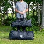 大型サイズゆえに全体の重量は24kg強とややボリュームがありますが、ポールと幕体を分けて運べるようになっています。