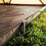 さらにサイドパネルは6枚すべて巻き上げることもできるので、暑い季節は全開放すれば通気性はさらにアップ! もちろんすべてのパネルをフルクローズにすることもできるし、幕体の裾部分にはスキマ風や虫の侵入を防ぐスカートも標準装備。蒸し暑い夏も、冷え込む冬も快適に過ごせるのはかなり頼もしい。