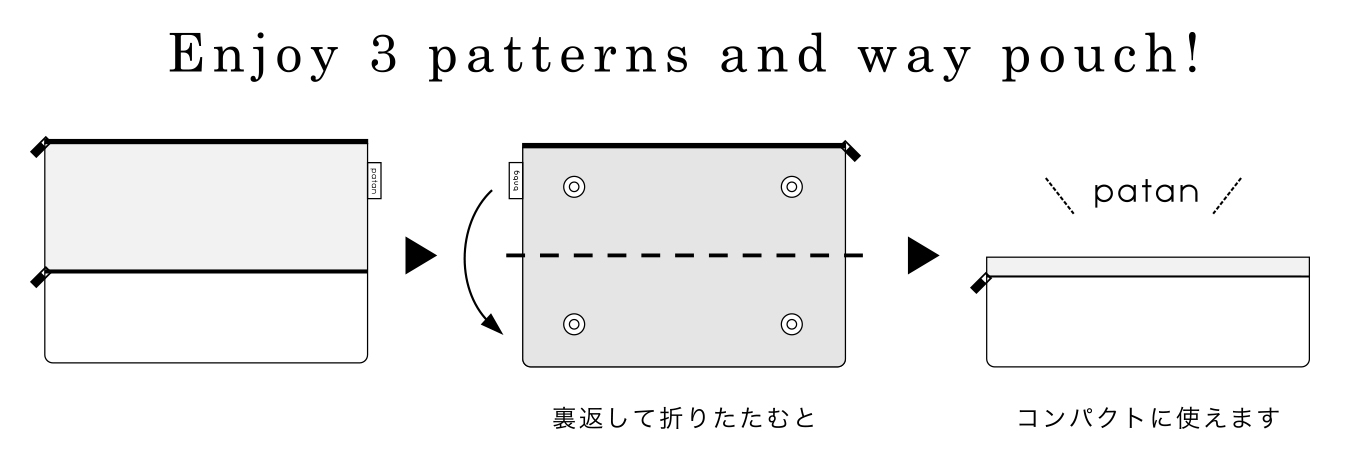 2つにたたんで使えば、コンパクトなペンポーチに。一方にはよく使うペン、 もう一方にはたまに使うカラーペンや定規など、2つの収納スペースを使⽤頻度によって分けて使う事で作業効率もぐっとアップします。