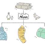 「Re:ACT」とは、NANGAが2022年6月より展開しているアップサイクル・プロジェクト。羽毛製品を専門に手がけるNANGAが、環境に対するサスティナブルな提案として打ち出している3つの柱〈RECYCLE〉〈AFTER CARE〉〈Re:ACT〉のうちのひとつで、限りある資源の有効活用を目的としています。