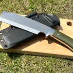 一般的なブッシュクラフトナイフは先端が尖ったデザインが多い中、フィールドを選ばずに気兼ねなく使える角ナタ形を採用。また、指をかけられる窪み(フィンガーチョイル)を付けるなど、伝統にとらわれないこだわりを詰め込んでいます。