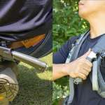 ハンドルを握って親指で押せばロック解除。カチッとロックするまで差し込めば、振り回しても外れることがありません。また、ベルトホルダー取り付けの向きや位置は自由に調整でき、横向きや縦向き、右利きや左利きにも対応。汎用性が高い点も魅力です。