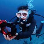 防水性能も15メートルと優れており、カメラ単体でもシュノーケリングでの水中の様子を記録できます。さらに、オプション品として用意される専用防水プロテクター「PT-059」を使えば、水深45メートルまでのダイビングにも対応。魚眼や望遠撮影用のコンバーター、水中用のフラッシュ、多彩な撮影モードも用意され、本格派のダイバーも納得の高性能です。