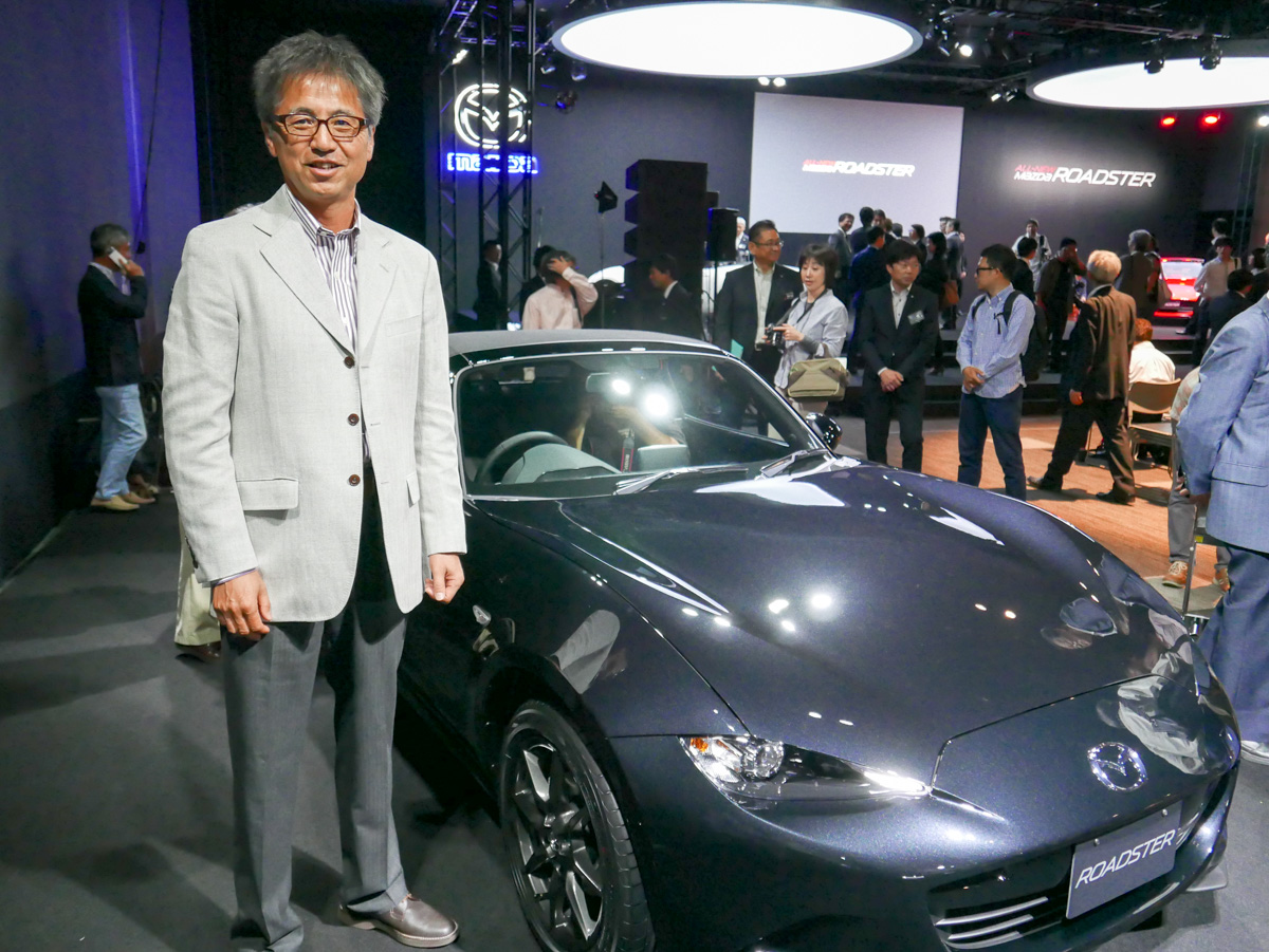 5月20日、東京・日本橋で行われたマツダ新型「ロードスター」発表会。その会場で、ある方の姿をお見掛けしました。ロードスターのシートに腰掛け、ステアリングを握り、ペダルに足をのせ、スイッチ類に手を伸ばす…。ディテールを子細にチェックするその方とは、トヨタ「86(ハチロク)」の開発責任者で、現在はトヨタのスポーツカー全般の開発を指揮する多田哲哉さん。