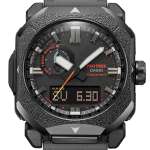 時計ケースとケースバック、ソフトウレタンバンドはエコ素材のバイオマスプラスチック樹脂を使用。