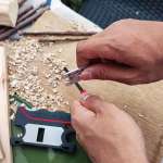 2つ目は鉋(かんな)。枝から火種となる細かい木屑を削り出せたり、着火材であるフェザースティックが作れます。なお、鉋の刃は岐阜県関市で製作されたもの。