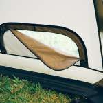 テント前後に大胆に設けられた大きな開口部も特徴。半円形の開口部は幅3.7mで、高さは170cm。暑い夏場には前後両方の開口部を全開にすれば涼しく快適に過ごせるし、冷え込み厳しい秋冬キャンプなら、付属のTPUウィンドウを取り付ければ、室内で暖をとりながら外の風景をゆったり眺められます。