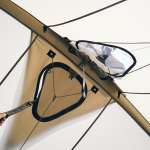 横幅が長く、奥行きが狭い横長シルエットもかなり個性的。一見不安定な形状にも見えますが、前後4カ所を幅広ガイロープで固定することで、強風にも負けないしっかりとした安定感を確保しています。