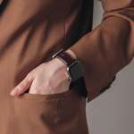 レザーの色は、ブラックとこげ茶の2色。どちらもApple Watchに大人の雰囲気を纏わせるクラシカルな佇まいです。スーツスタイルにもバッチリと決まりそう。