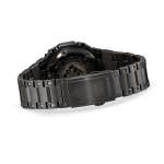 ダイアルには初代モデル「DW-5000」と同じレッド・ブルー・ゴールドのカラーリングを配し、ベゼルとバンドにはブラックIPを施した後にエイジド加工でブラックIPを部分的に剥離。