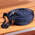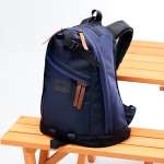 たっぷりの容量にポケットを3個(荷室内×2・フロント面×1)搭載し、ネイビーブルーの生地に牛革の引手が映える色合いで、日常用からアウトドアまでシーンを問わず使える汎用性の高さが大きな魅力です。