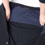 生地企画の段階からどんな動きにも対応できるよう、緯糸や経糸の長さや本数の調整を繰り返し行い、伸長率の高いポリウレタンを組み合わせることで高いストレッチ性を実現しています。