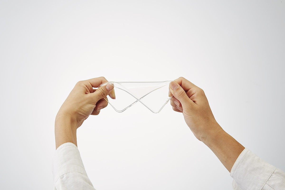素材は、わずか0.9mmという薄さでありながら衝撃吸収性があり、さらに柔軟性が高いため着脱もしやすい。